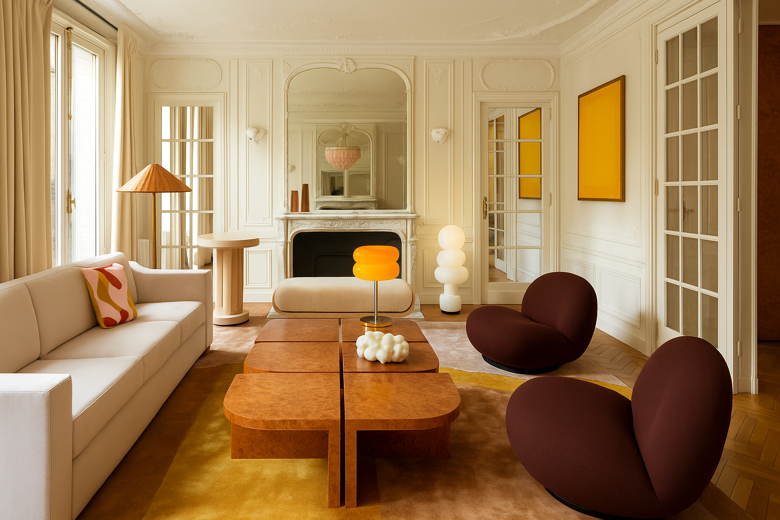 Avec son design raffiné en verre soufflé façon macaron et sa monture argentée en acier inoxydable brossé, Mira diffuse une lumière douce.